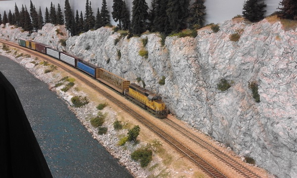 NEU 15.November 2017 An der US Convention in Rodgau im Oktober 2017 haben mehrere Freunde der US-fine H0 Gruppe mit einer Fahranlage mit dem "Thema Feather River Canyon" teilgenommen. Die Anlage besteht aus 10 Segmenten a. 90cm Länge meinen Universalkurven und eine dahinterliegenden Fremo Schattenbahnhof. Die Segmente können auch in einem Modularrangement eingebunden werden da es zwei Normübergänge nach Valley Profil gibt. Gestaltet ist die Anlage nach Motiven aus dem Feather River Canyon (ehemals Third Subdivision der Western Pacific von Oroville, CA nach Portola, CA), es gab vorbildorientierten Fahrbetrieb mit langen Zügen. Hier findet man Videos von der Anlage auf der US Convention => FREMO Modelleisenbahn Feather River Canyon mit langen Zügen <=