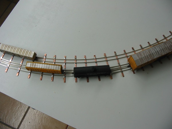 durch auflöten von Schienenprofilen auf Pertinaxschwellen. Das Gleis lässt sich dadurch sehr gut ausrichten und