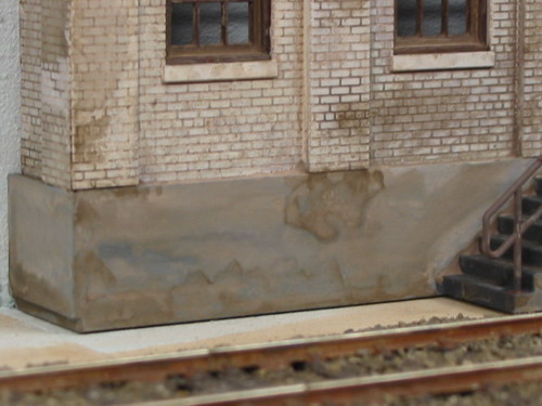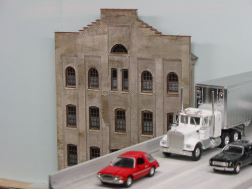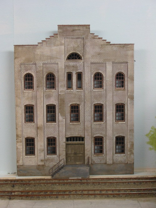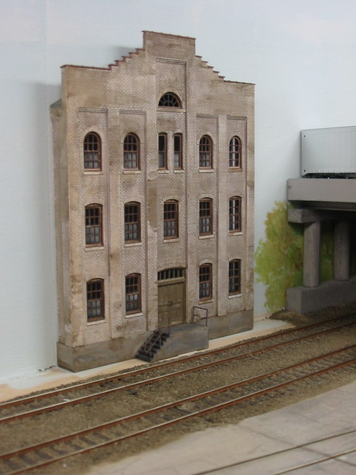 NEU 11.03.2008 Nach Gleis und Modulbau habe ich wieder Lust auf was anderes, es wurde mit den Hintergrundgebäuden begonnen. Als erstes entstand das Gebäude Plant No.4 aus der Walthers Cornerstone Serie 933-3183, auf der Anlage kommt es als lehrstehendes Lagerhaus zum Einsatz. Das Gebäude wurde von der Tiefe angepasst, ansonsten nur farblich behandelt, ganz fertig ist es noch nicht...Fensterscheiben usw. fehlen noch... die Alterung ist auch noch nicht abgeschlossen...