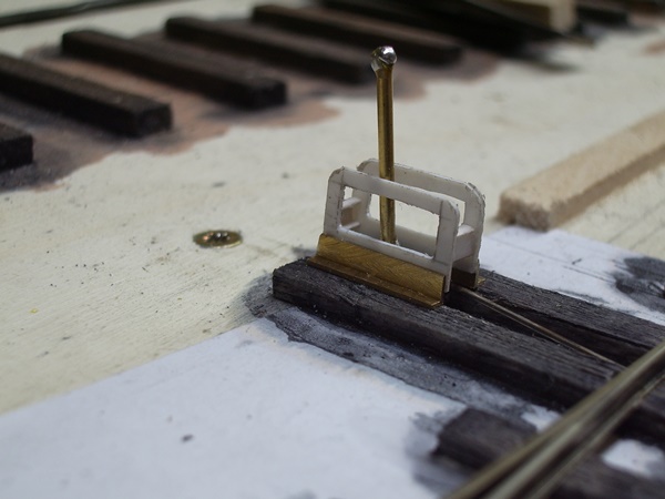 Weichenstellhebel in Form eines Kippschalters der mit einem Messingrundmaterial verlängert wurde eingebaut.