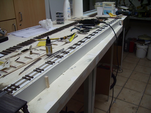 gebaut, im Bereich auf dem linken Segment vor der 1e Weiche wird es eine Ausweiche mit zwei Weichen geben.