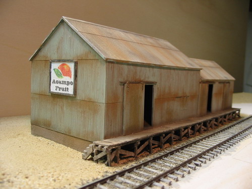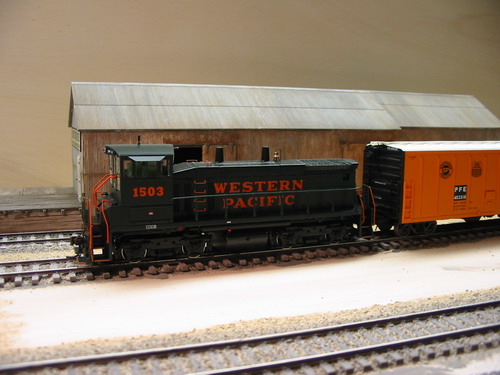 NEU 5. Mai 2009 Durch viel Stress im Job und Erkrankungen geht es nur schleppend weiter... Acampo Fruit hat die hölzerne Verladerampe bekommen und die Gebäude wurden fest auf den Modulen eingebaut und drumherum eingesandet. Dann ist die Tage auch meine Athearn SW1500 der Western Pacific gekommen sehr schön detailiertes Modell mit ausgezeichneten Fahreigenschaften und für 77,- EUR jeden Cent wert...