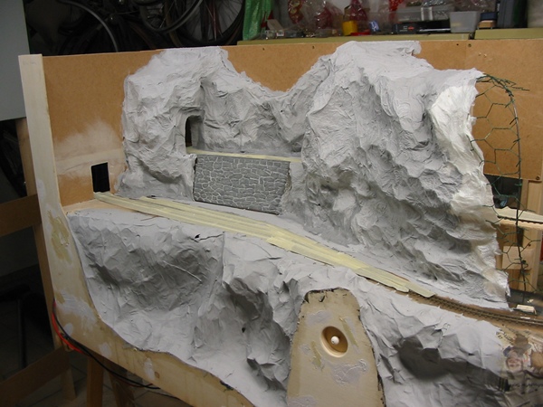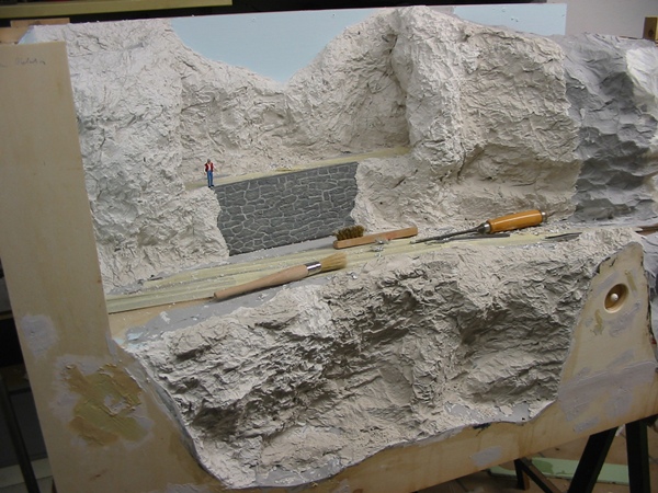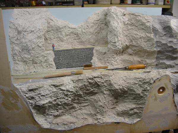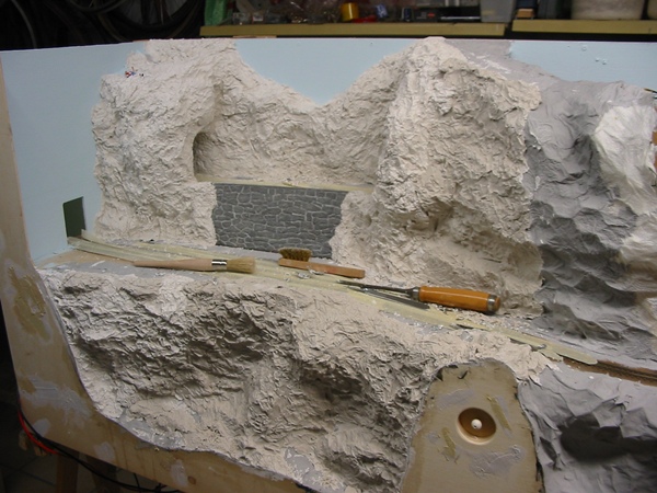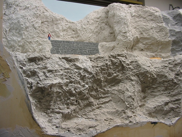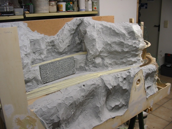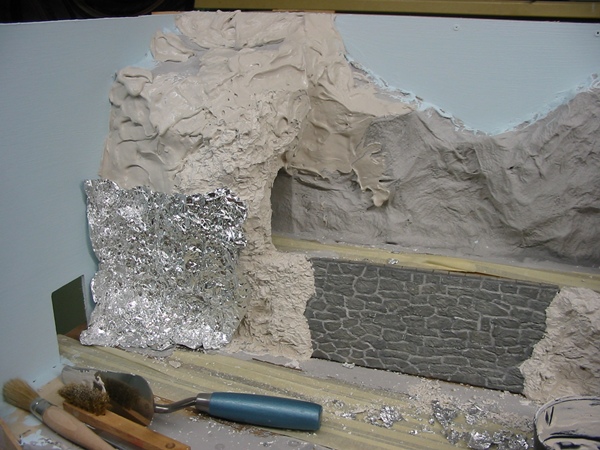 Die Felsen wurden in der bereits bewährten Füllspachtel/Alufolie Methode hergestellt.