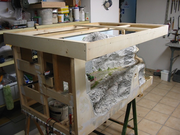 Der Rahmen für die Sichtblende und Beleuchtung ist im Rohbau entstanden, für den Transport ist der
