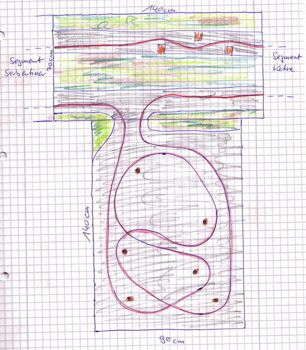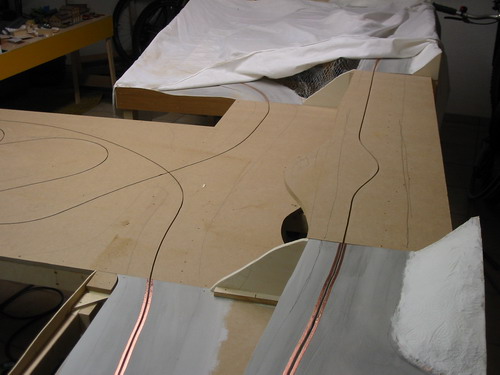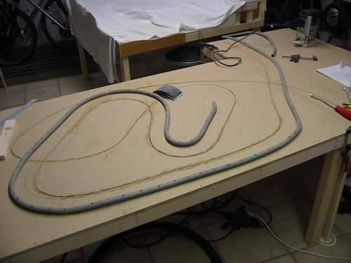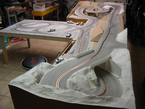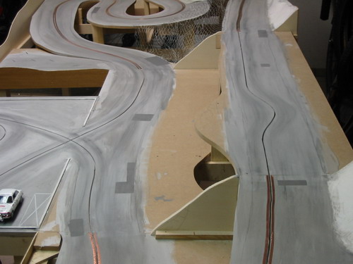 Die Erweiterung wurde soweit farblich gestaltet, damit ich als nächstes das Kupfertape aufgekleben kann...In der langen Gerade wurde eine Schikane eingebaut...sollte diese nicht gut fahrbar sein habe ich als Alternative noch einen geraden Slot gefräst...somit lässt sich diese leicht wieder rausnehmen