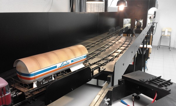 Aktualisiert 07.06.2020 Um bei begrenzten Raum für die Spur 1 Betrieb zu machen braucht es ungestaltete Betriebssegmente, so nenne ich die mal. Neben meinem Fiddle Yard "Rbf. Deistelbach Ost" ist nun auch der Fiddle Yard "Deistelbach Ost" betriebsbereit. Die Beleuchtung ist nur noch nicht fertig. Der Rangierbahnhof bietet die Möglichkeit jetzt auf Deistelbach Ost besser Betrieb zu machen, es besteht die Möglichkeit das Loks umgesetzt werden und kurze Züge gebildet werden. Desweiteren besteht auch über Deistelbach Ost Fiddle Yard. die Möglichkeit die gedachten Erweiterungen, Staberg und die Lokwerkstatt der Deistelbacher Industriebahn zu erreichen. Platzbedingt sind natürlich nur kurze Züge mit 2-3 Wagen möglich da die Schwenkbühnen nur eine Länge von 1m haben was mir aber für meinen Piffelbetrieb ausreicht.